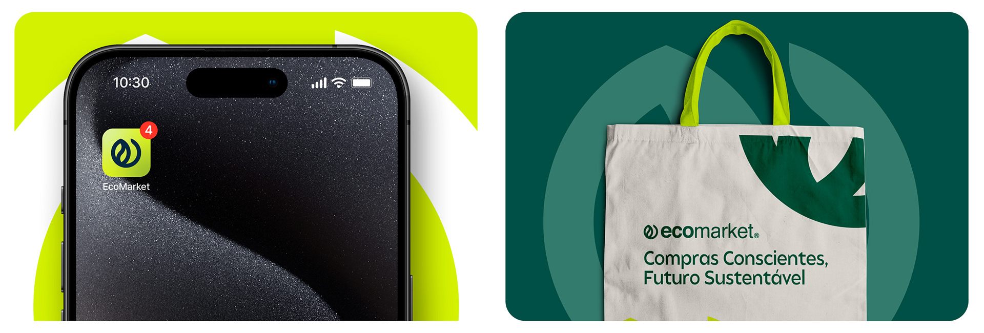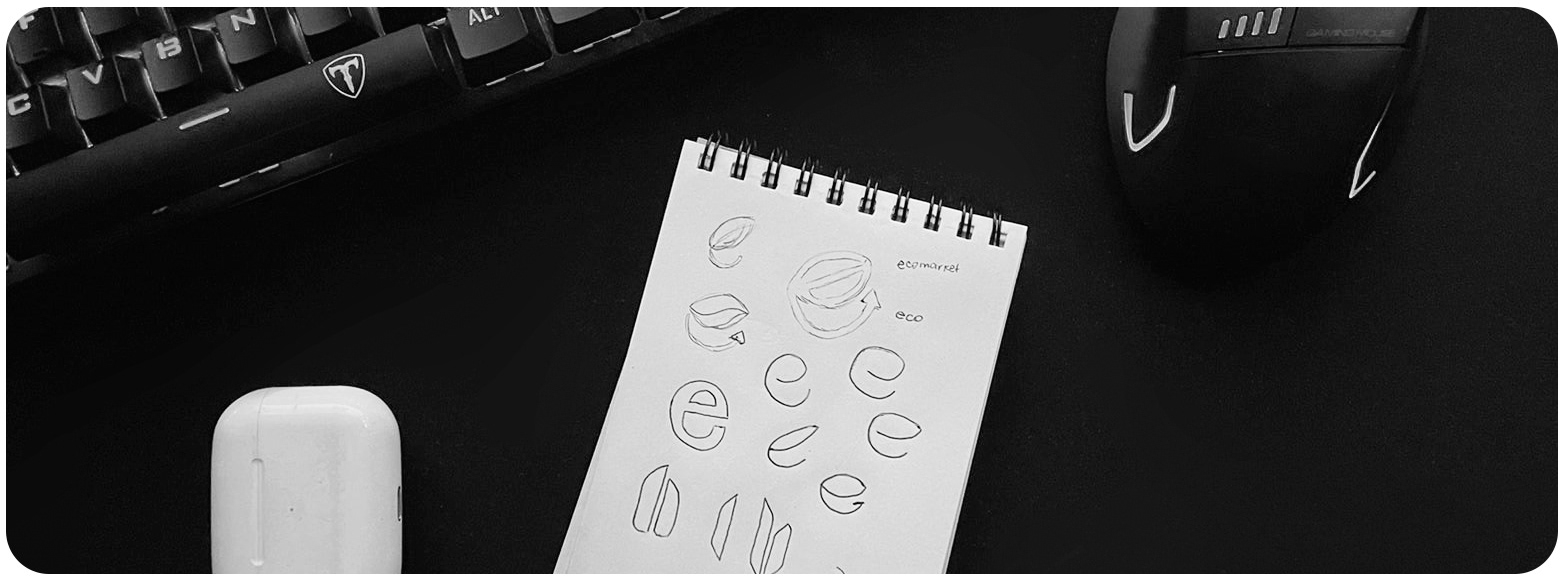 A criação da logo do EcoMarket foi guiada por um conceito minimalista, visando simplicidade e elegância. A ideia central foi combinar a letra "E" de EcoMarket, que também faz alusão a eletrônicos e ao e-commerce, com o formato de uma folha, símbolo universal de natureza e sustentabilidade.