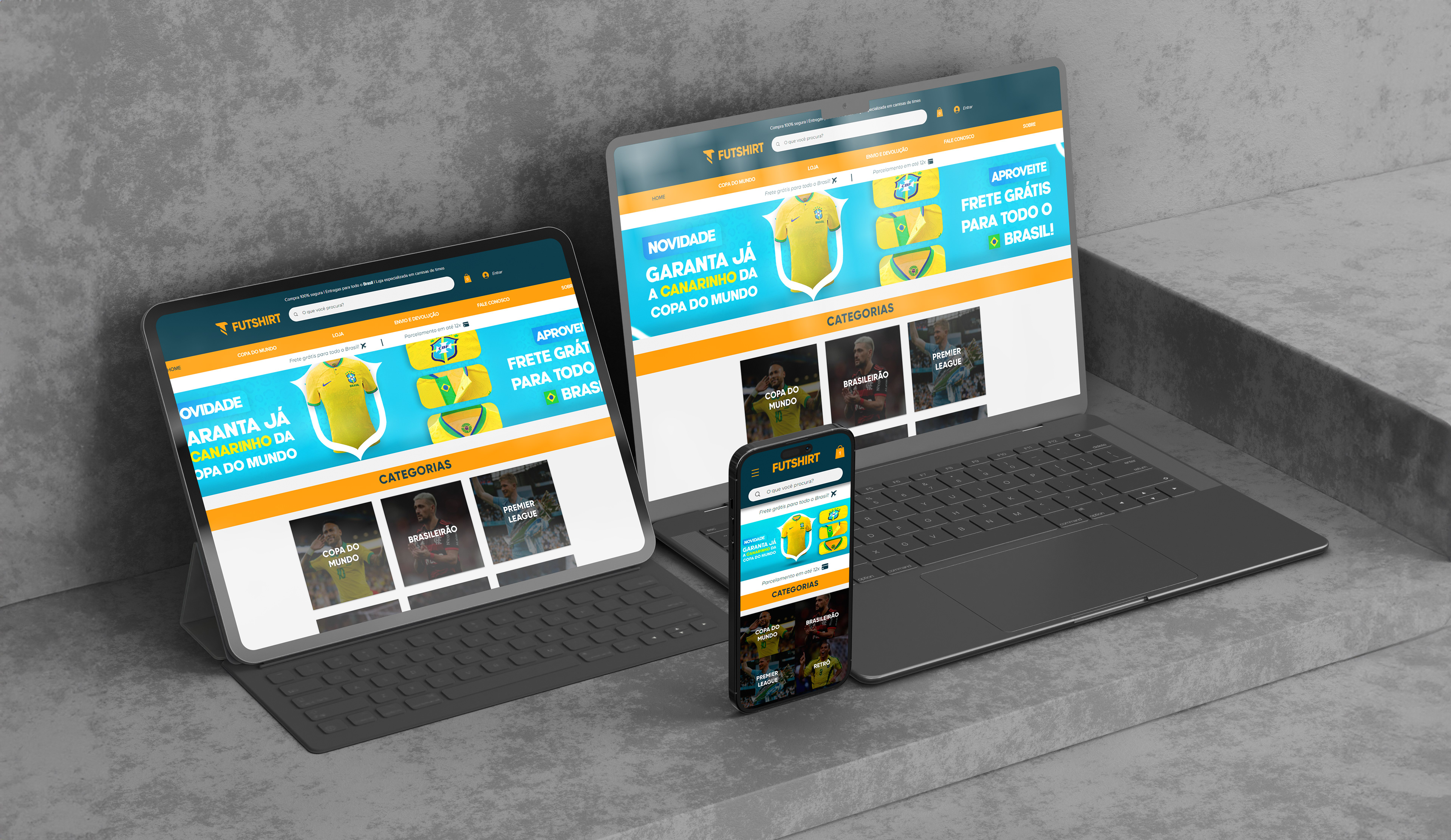 Projeto 100% autoral onde desenvolvi naming, identidade visual, estratégia de comunicação, presença digital e materiais promocionais. Criação de marca que dialoga com a paixão brasileira pelo futebol sem cair no óbvio. Desenvolvimento de sistema visual dinâmico adaptável para diferentes times e competições. Produção completa de materiais: fachada, sinalização interna, etiquetas, sacolas, uniformes, cartões de visita. Criação de campanhas sazonais (Copa do Mundo, Brasileirão, estaduais) com elementos 3D de produtos esportivos. Gestão completa da presença digital: identidade para redes sociais, posts promocionais, stories interativos. Desenvolvimento de estratégia de conteúdo focada na experiência do torcedor e qualidade dos produtos.