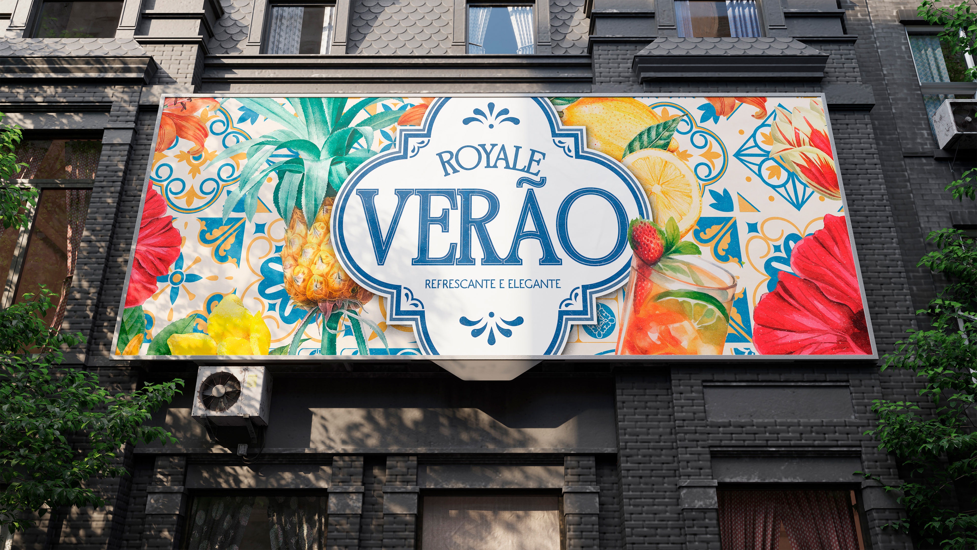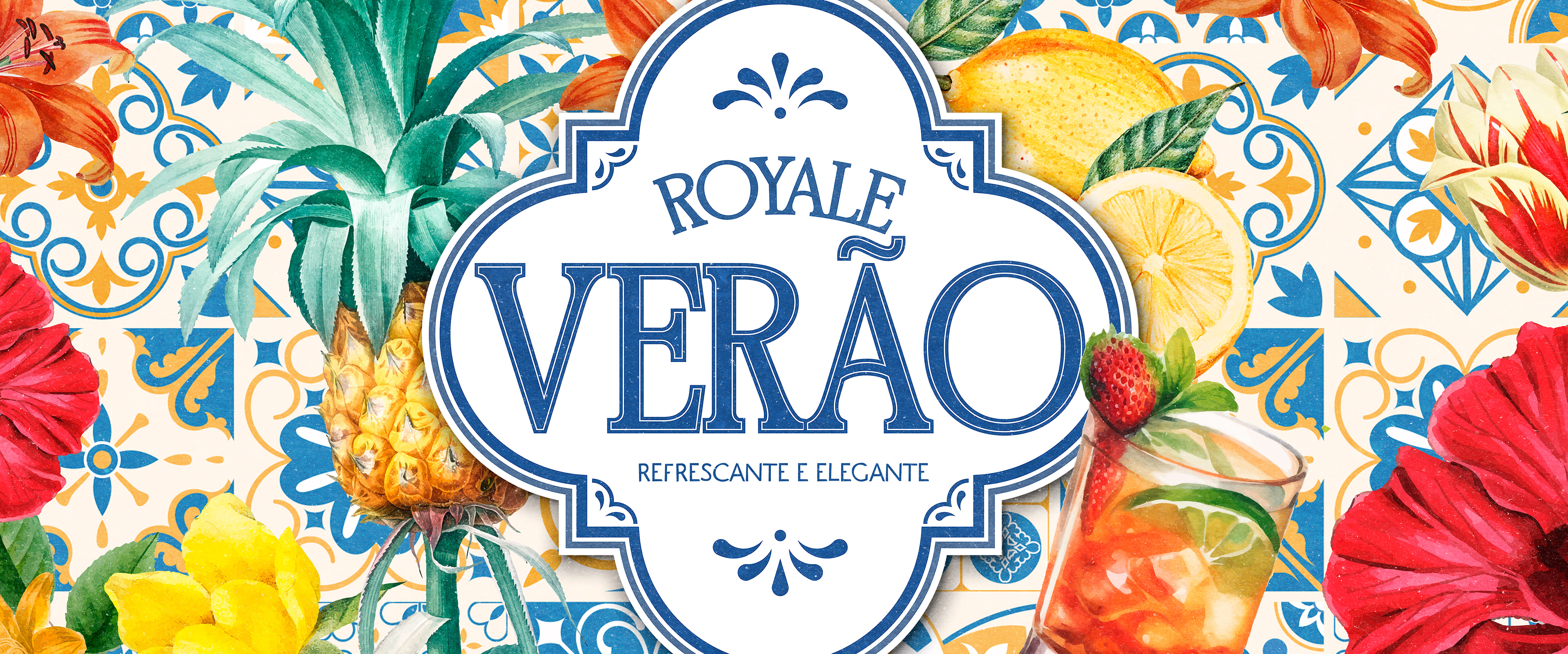 Desenvolvimento do conceito "Verão Royale" traduzindo exclusividade e refinamento para o contexto de supermercado. Criação de identidade visual premium com paleta azul royal, tipografia elegante e elementos gráficos sofisticados. Roteirização de comerciais com narrativa aspiracional, focando em experiências de verão de alto padrão. Produção de materiais gráficos diferenciados: displays em acrílico, sinalização premium, banners com acabamento especial.